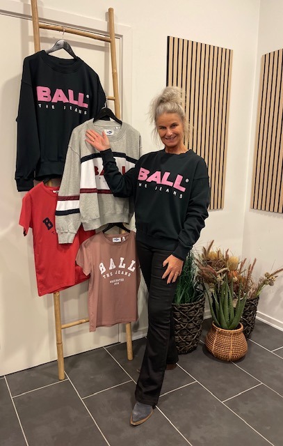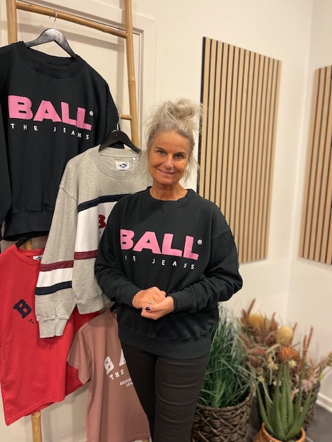 Cool sort sweat med pink skrift fra Ball. Style den både til bukser og til en nederdel.