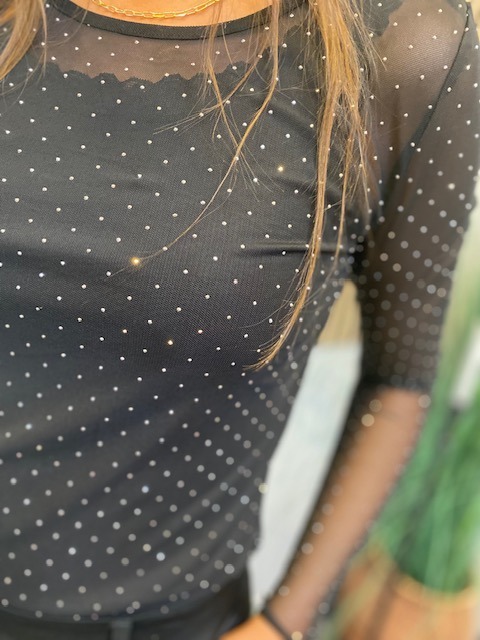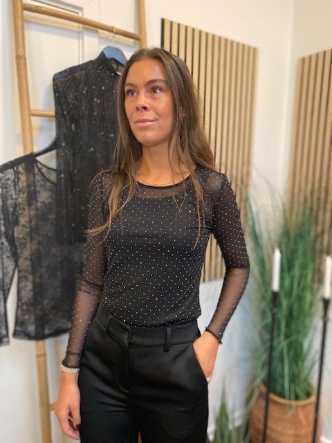 Flot og festlig sort meshbluse med similisten fra CC Heart. Style den under alt.