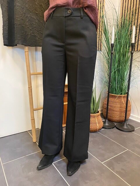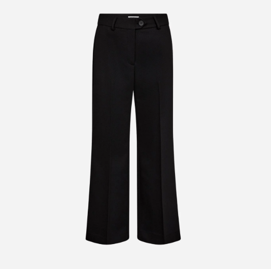 Sorte viddebukser fra Co’Couture med en løs pasform. Bukserne har knap- og lynlåslukning foran samt bæltestropper omkring taljen. En buks du nemt kan style til både hverdag og til fest.