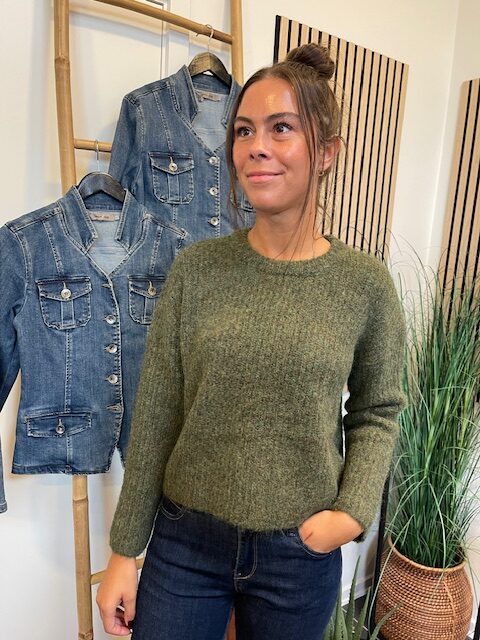 Super lækker strik i en flot grøn farve fra Co”couture Den bløde, fluffy strikkvalitet giver både varme og komfort, mens det klassiske design med rund hals og lange ærmer gør den nem at style til enhver lejlighed.