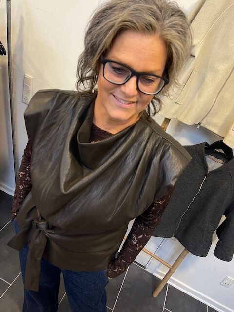 Den populære top læder look fra Co Couture i en flot mørkebrun farve. Style den til både jeans, nederdel og til en pæn buks.