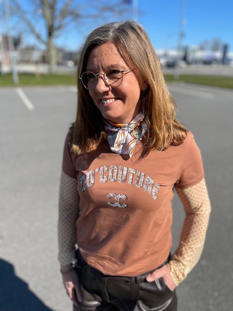 Moderigtig cognac farvet t-shirt fra Co”couture.