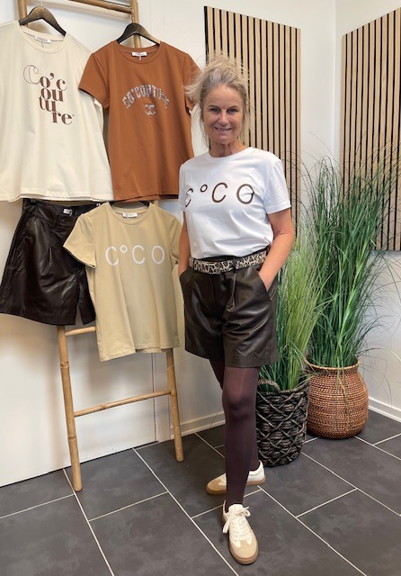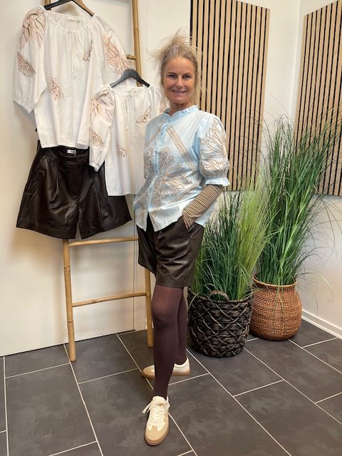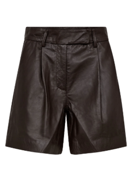 Cool mørkebrune skind shorts fra Co”couture. Style dem både med strømpebuks og med bare ben på de varme dage.