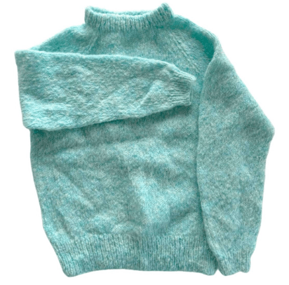 Størrelse: Medium – Strikkerne sigter efter følgende mål: 55 cm. bred og 60 cm. lang. Ærmerne er lidt længere end standard.