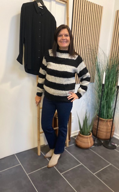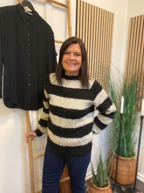 Ida strikken i striber er en essential i Coffee Beanies’ vifte af strik. Håndstrikket i en let og luftig i alpaka børstet uld fra Italien.