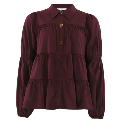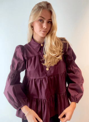 En fin skjorte fra Continue er kommet i denne smukke bordeaux farve. Den er i løs pasform og har peplum effekt. Den er fin til hverdag med et par jeans og til en festlig begivenhed med en nederdel eller til en pæn buks.