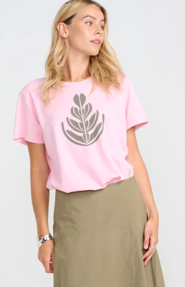 Kortærmet t-shirt i en blød og behagelig kvalitet med rund hals. Designet med et grafisk frontprint, der giver et enkelt og moderne udtryk. En alsidig basisstyle, der er nem at style til både hverdag og afslappende looks.
