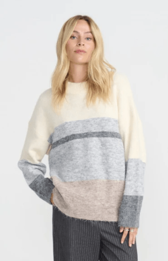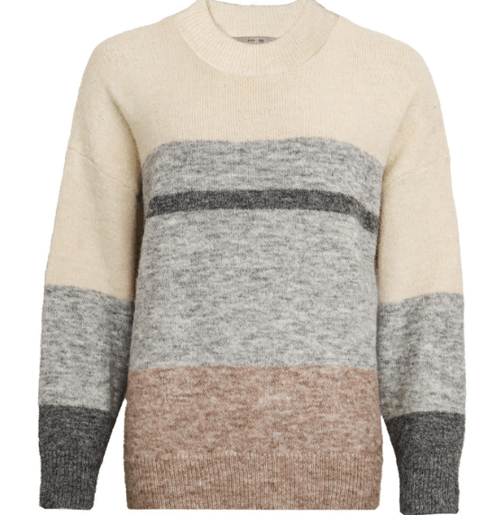 Pæn klassisk striktrøje fra Costa Mani. Den har en rund hals og lange ærmer. Derudover er den almindelig i pasformen. Style den til både bukser og til nederdel.