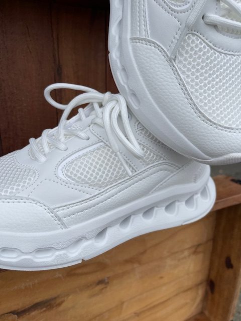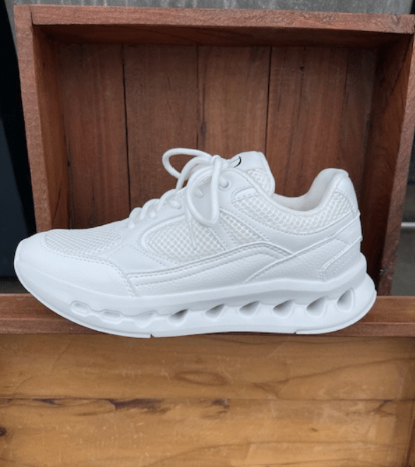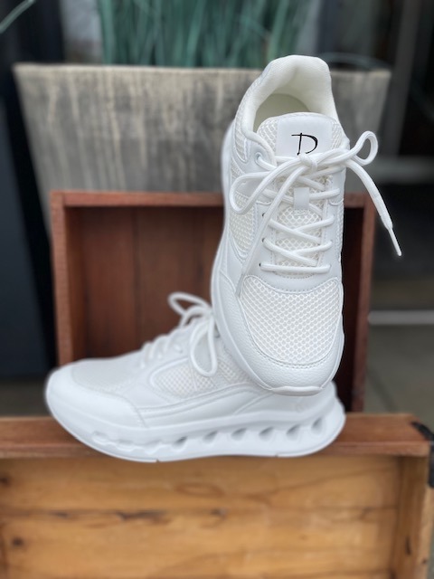 Let og moderigtig hvid sneakers fra Duffy. Dem kan du style til alt – både shorts, bukser, kjoler og til en nederdel.