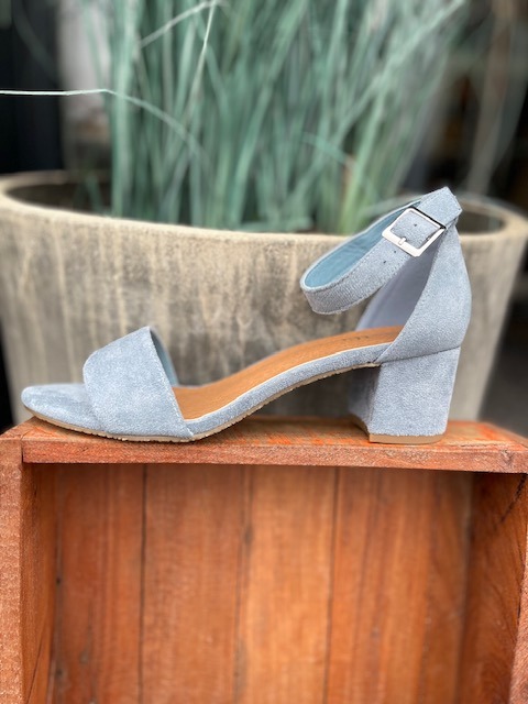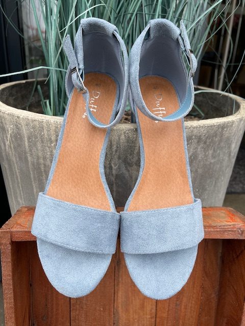 Klassisk sandal i lyseblå fra Duffy. Sandalen har en lille god blokhæl og ankelrem. Perfekt til både bukser, kjoler og til en nederdel.