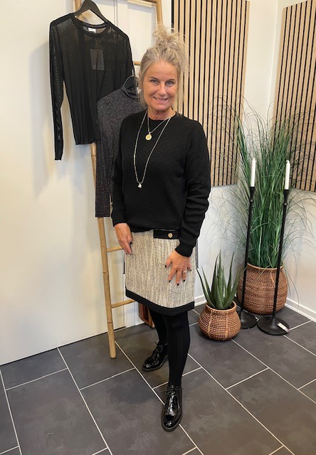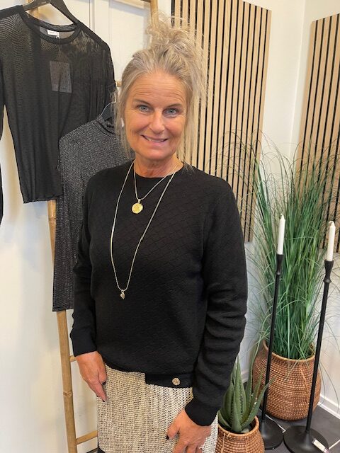 Skøn sort strik i en lækker blød bomuld fra Freequent. Den er nem at style til både bukser og til en nederdel.