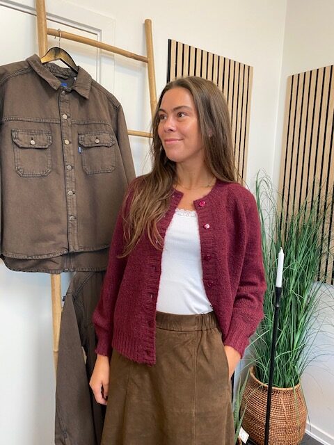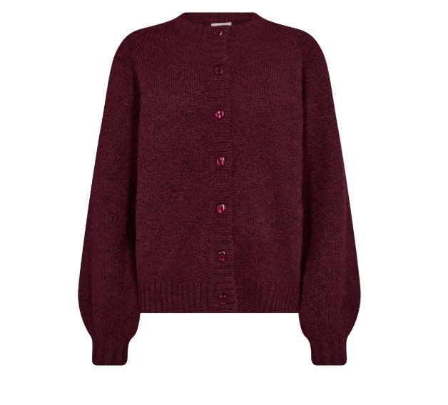 Klassisk strik cardigan med lange ærmer i en flot bordeaux farve fra Freequent.