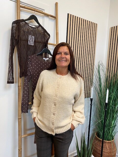 Lækker offwhite strik cardigan fra Freequent. En populær cardigan som vi har i mange flotte farver.
