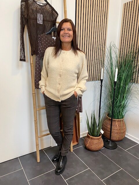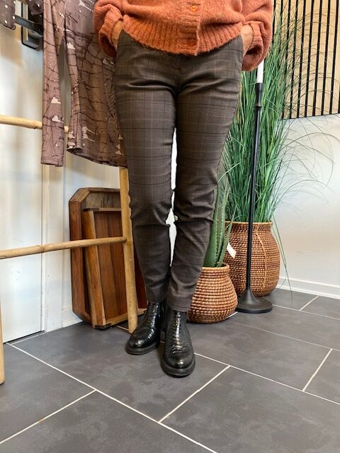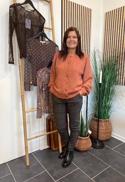 Smart og moderigtig buks i brune farver fra Freequent. Style buksen feminint med en pæn bluse og hverdagsagtig med en lækker strik.