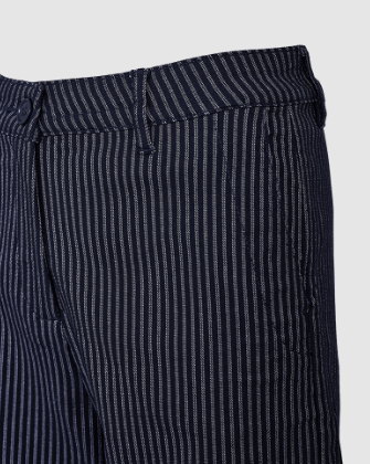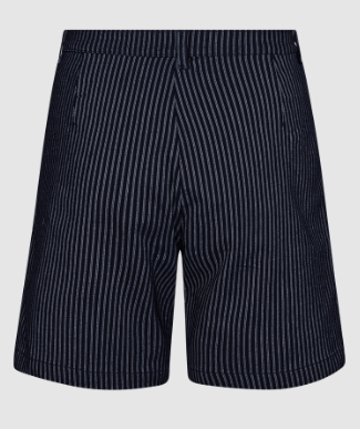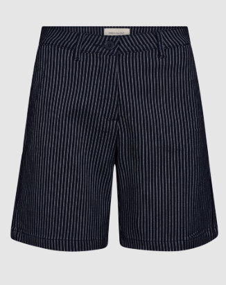 Mørkeblå shorts med bæltestropper, fra Freequent med hvide tynde striber.