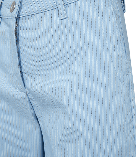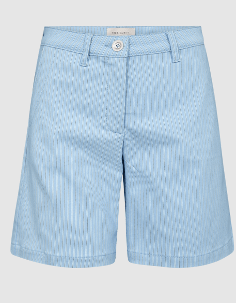 Lyseblå shorts med bæltestropper, fra Freequent med en hvide og helt tynde sorte striber.