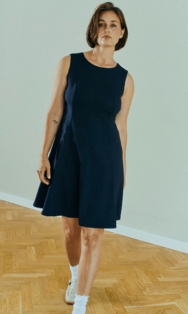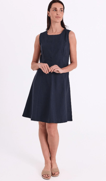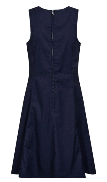 Ærmeløs kjole i en blød mørkeblå denimlignende kvalitet med et enkelt og feminint udtryk. Designet med rund hals, lynlåslukning i ryggen og figurskabende syninger, der fremhæver din figur.