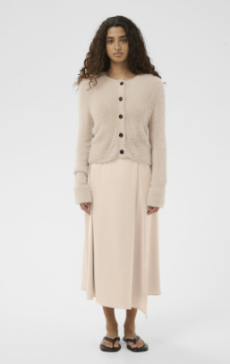 Skøn cremefarvet nederdel fra InWear. Med sin midi-længde skaber nederdelen en klassisk silhuet, der både er tidløs og moderne. Den elastiske talje sikrer en behagelig pasform. Med sin løse pasform er nederdelen yderst behagelig at have på og giver dig mulighed for at bevæge dig frit og den kan styles med alt fra en enkel t-shirt til en elegant bluse, afhængigt af anledningen.