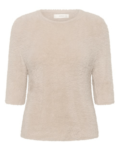 Super blød beige farvet kortærmet bluse fra Inwear. Blusen sidder tæt og er til dig, som ønsker at vise din figur.