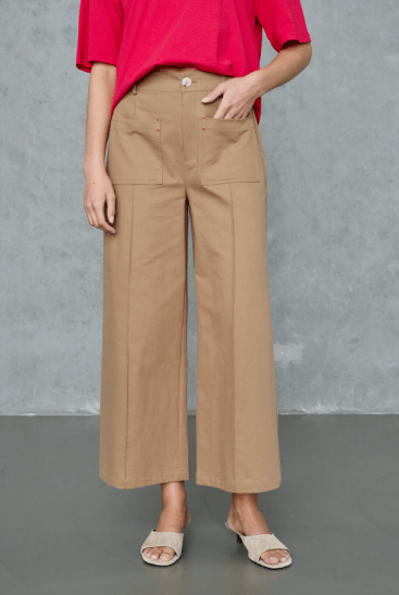 Moderigtig brun buks fra Love & Divine med smarte lommer foran og med vidde i benene.