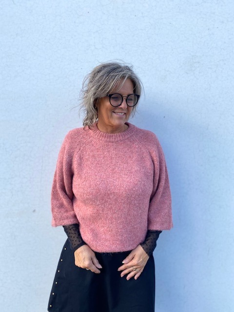 Pullover fra Freequent i blød, strikket kvalitet i en flot gammelrosa farve. Pulloveren er enkel i modellen med trekvartlange, vide ærmer, en rund halsudskæring, ribkanter samt en elegant, løs pasform.