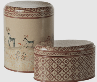 Et sæt med to dekorative metalæsker fra Maileg med Vinterland-design. Perfekte til småkager, julegodter eller som dekorativ opbevaring.