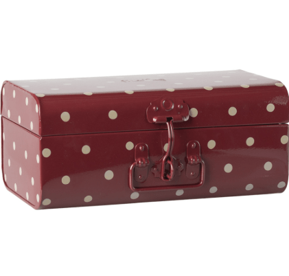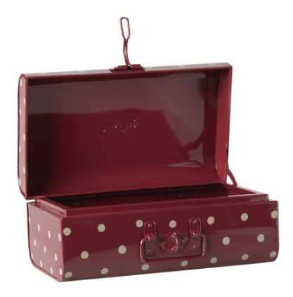 Den smarte prikkede opbevaringskuffert fra Maileg er oplagt som dekoration og opbevaring.