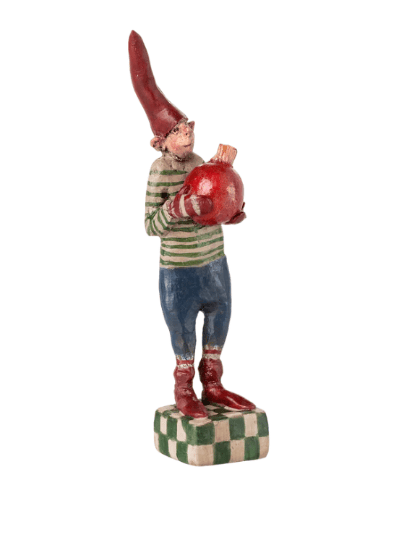 Noilly Noél No 32 med rød julekugle i hånden fra Mailegs 2025 kollektion.