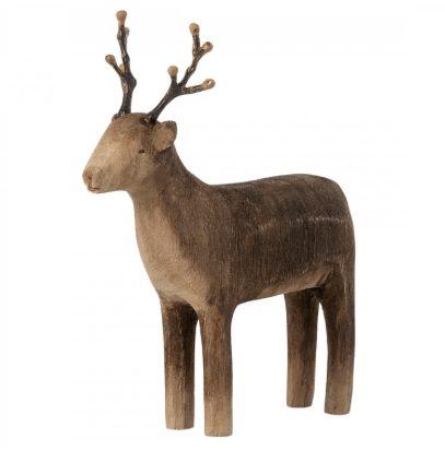 Et nyt produkt er blevet tilføjet til de klassiske dekorationsartikler i træ. Rensdyrene er skåret ud i hånden, geviret er lavet i metal og med en smuk finish. Den er håndmalet, og kan variere i farvetonen – ligesom et rigtigt rensdyr.