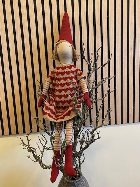 Maileg Size 5 Girl Rød-Sand Strik Kjole