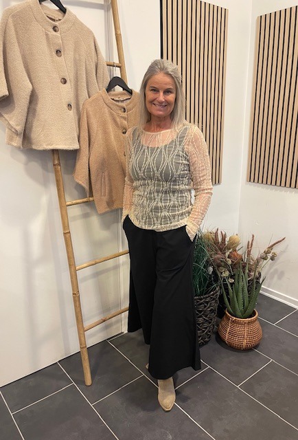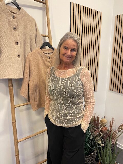 Den har rund hals og lange ærmer, hvilket gør den alsidig og nem at style – enten alene med en top eller bh under, eller som et raffineret lag under en blazer, vest eller strik. Flot lys farve, som passer perfekt til forårets mode.