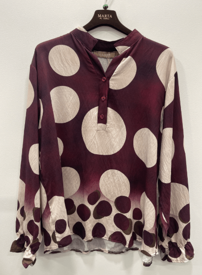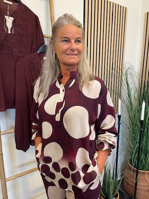 Marta Aspen Bluse Bordeaux Med Offwhite Prikker