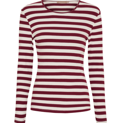 Stribet langærmet t-shirt i bordeaux/hvid fra Marta. Den sidder tæt og er perfekt at style under alt.