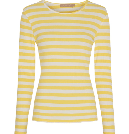 Basis stribet langærmet bluse i gul/offwhite striber fra Marta Du Cháteau i en dejlig blød kvalitet. Style den under alt