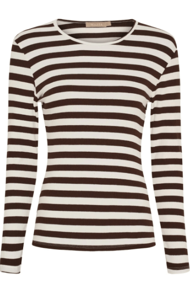 Langærmet t-shirt i brun/hvide striber fra Marta. Perfekt at style under alt.