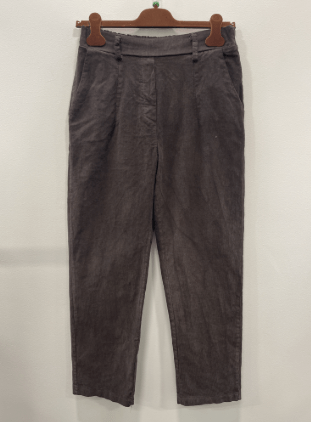 Super blød mørkebrun buks i en slags babyfløjl fra Marta. Buksen har elastik i taljen og har kort benlængde.