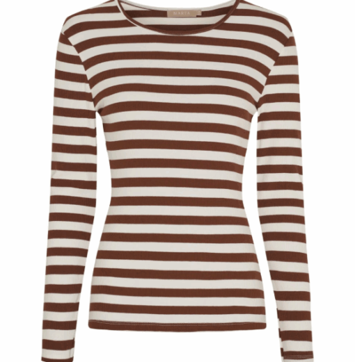 Basis langærmet cognag/offwhite stribet bluse fra Marta Du Cháteau i en dejlig blød kvalitet. Nem at style under alt.