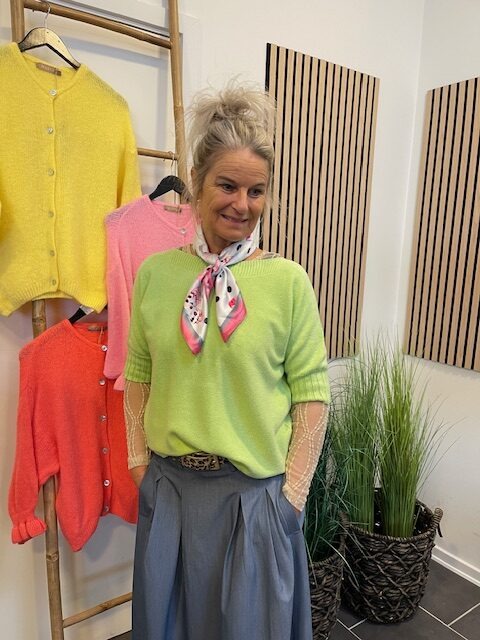 En skøn strik i en flot grøn farve fra Marta. Blusen har et fint lille ærme.