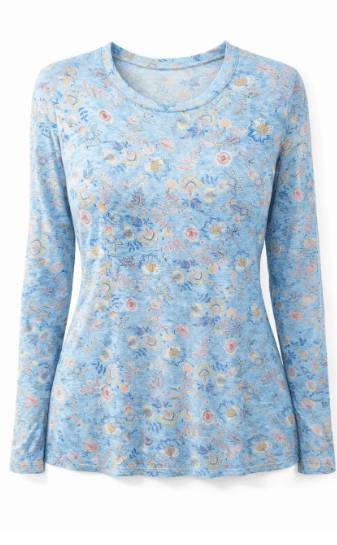 Let og feminin bluse fra Marta Du Chateau i en smuk lyseblå nuance med et romantisk blomsterprint i pasteltoner.