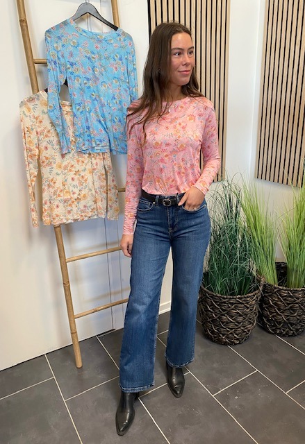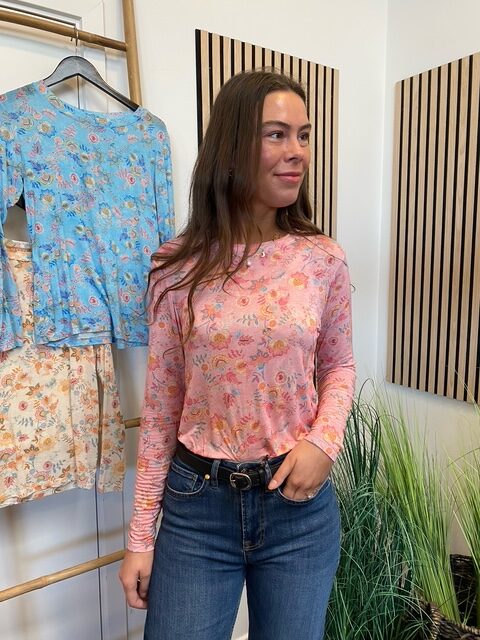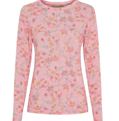 Let og feminin bluse fra Marta Du Chateau i en smuk lyserød nuance med et romantisk blomsterprint i pasteltoner.