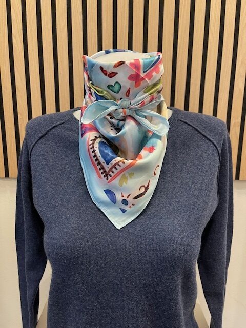 Skønt lille tørklæde med multifarvede hjerter fra Marta.