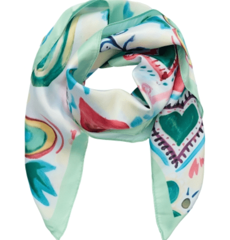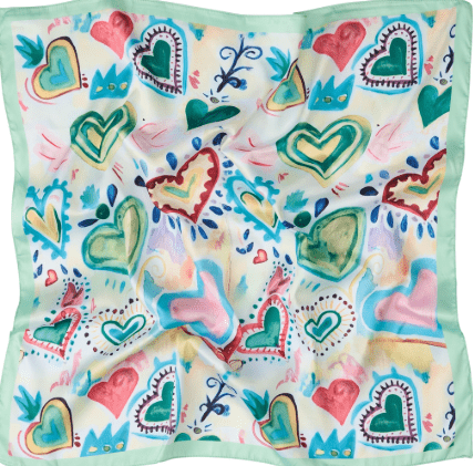 Smukt tørklæde med hjerter i grønt multifarvet print fra Marta.
