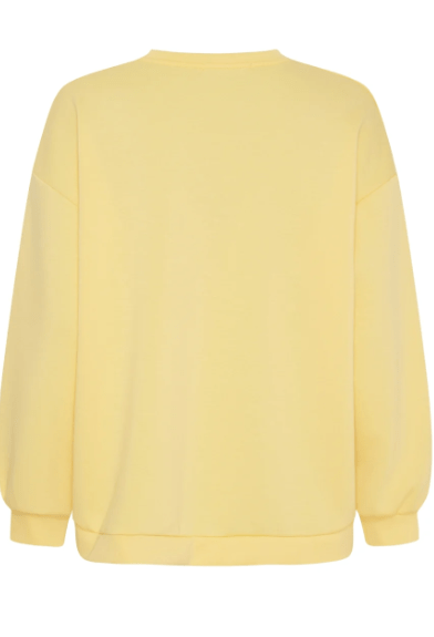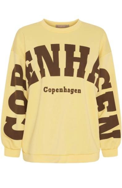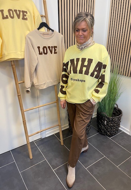 Lækker sweatshirt fra Marta Du Chateau i gul, med brun skrift. Style den til både bukser og til en nederdel.