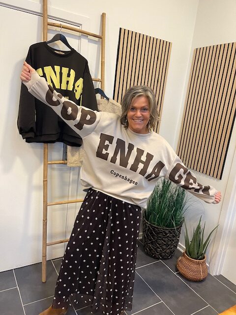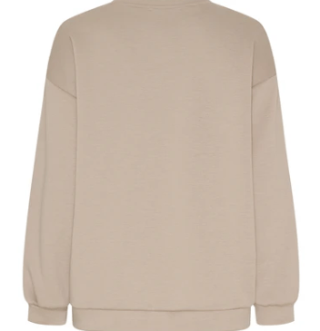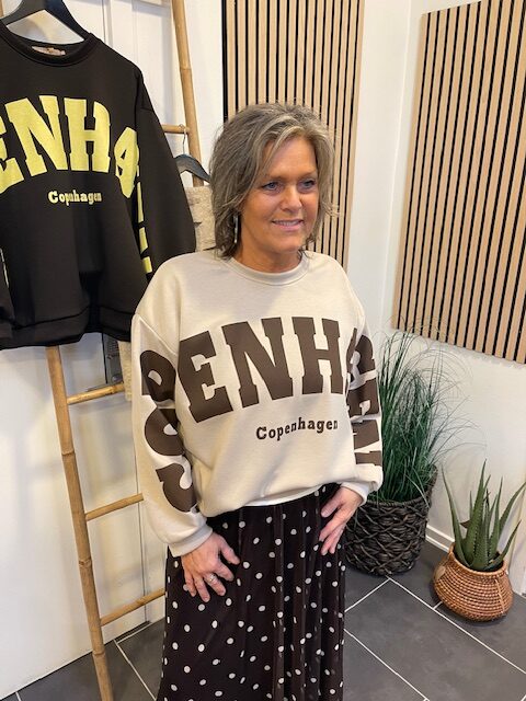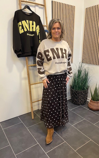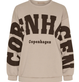 Cool og trendy sweatshirt fra Marta Du Chateau. Den er beige med mørkebrun tryk. Style den med et par jeans og chunky boots. Og til en kort eller lang nederdel.