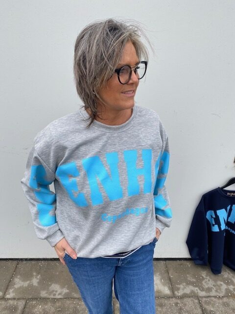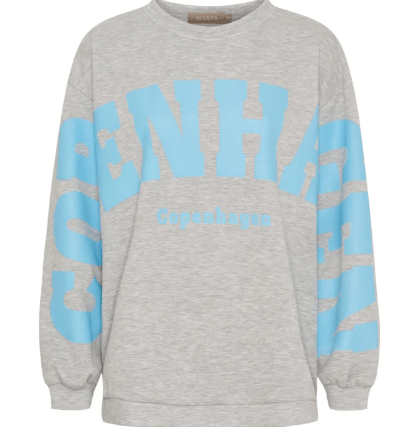 Lækker blød oversize sweat i grå med lyseblå skrift fra Marta.