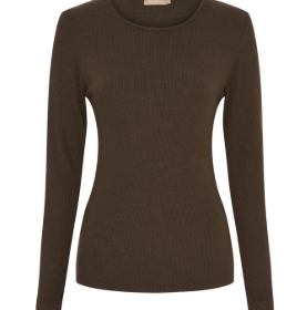 Lækker basic langærmet t-shirt i rib kvalitet i en flot brun farve. Er super alsidig og kan styles med hvad end man har i klædeskabet. En tidløs favorit der er uundværlig.