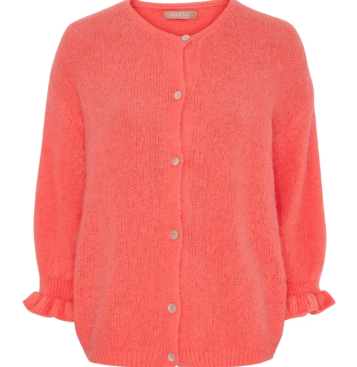 Sød strikket cardigan fra Marta med flæsedetaljer ved ærme i en flot koral rød farve. Cardiganen har fine knapper langs fronten og er med 3/4 ærmer. Helt perfekt til hverdagsbrug. Style den med både jeans, habitbukser og nederdele – mulighederne er mange.