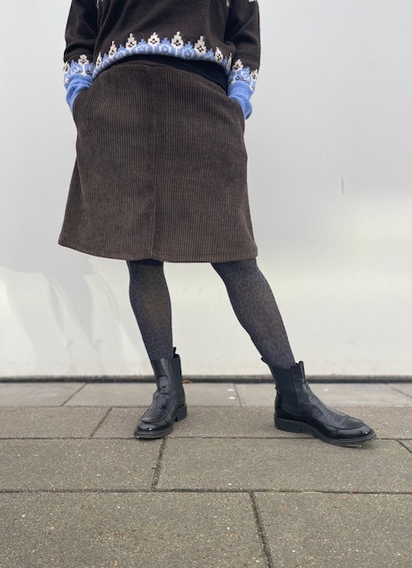 Skøn mørkebrun nederdel i fløjl fra Marta. Der er elastik i taljen og lommer i begge sider. Super blød og behagelig.