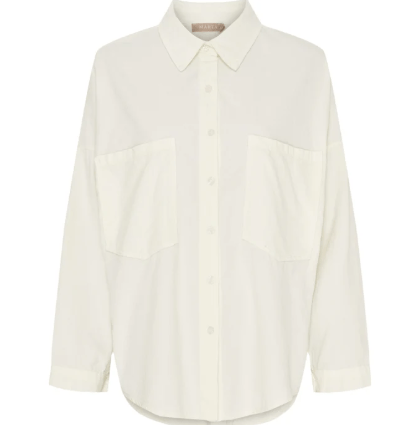 Klassisk og fin offhite skjorte i babyfløjl fra Marta Du Château. Skjorten har gennemgående knapper, to brystlommer og krave. Den er super alsidig og kan både styles med et par jeans og til en nederdel.