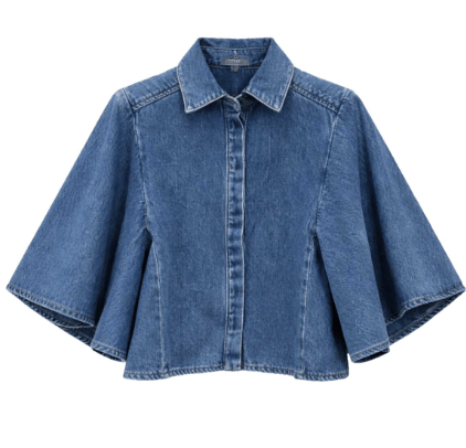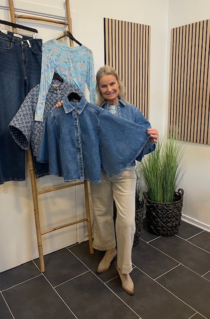 Cool og feminin denimskjorte fra Marta Du Château i en klassisk blå vask. Skjorten har korte, vide ærmer med flot fald, klassisk krave og gennemgående knaplukning foran, som giver et moderne og stilfuldt udtryk med et elegant twist. Brug den indenfor nu og til sommer har du en fed sommerjakke.